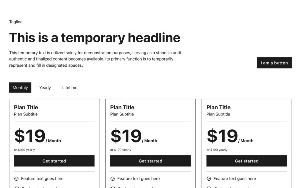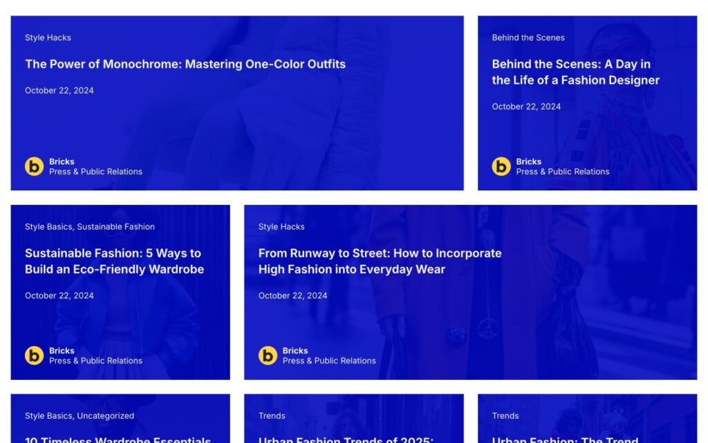 Jumpstart projects with pre-made wireframes and design sets – free of charge in every Bricks plan. Adjust them to your needs and embark on a swift creative journey.